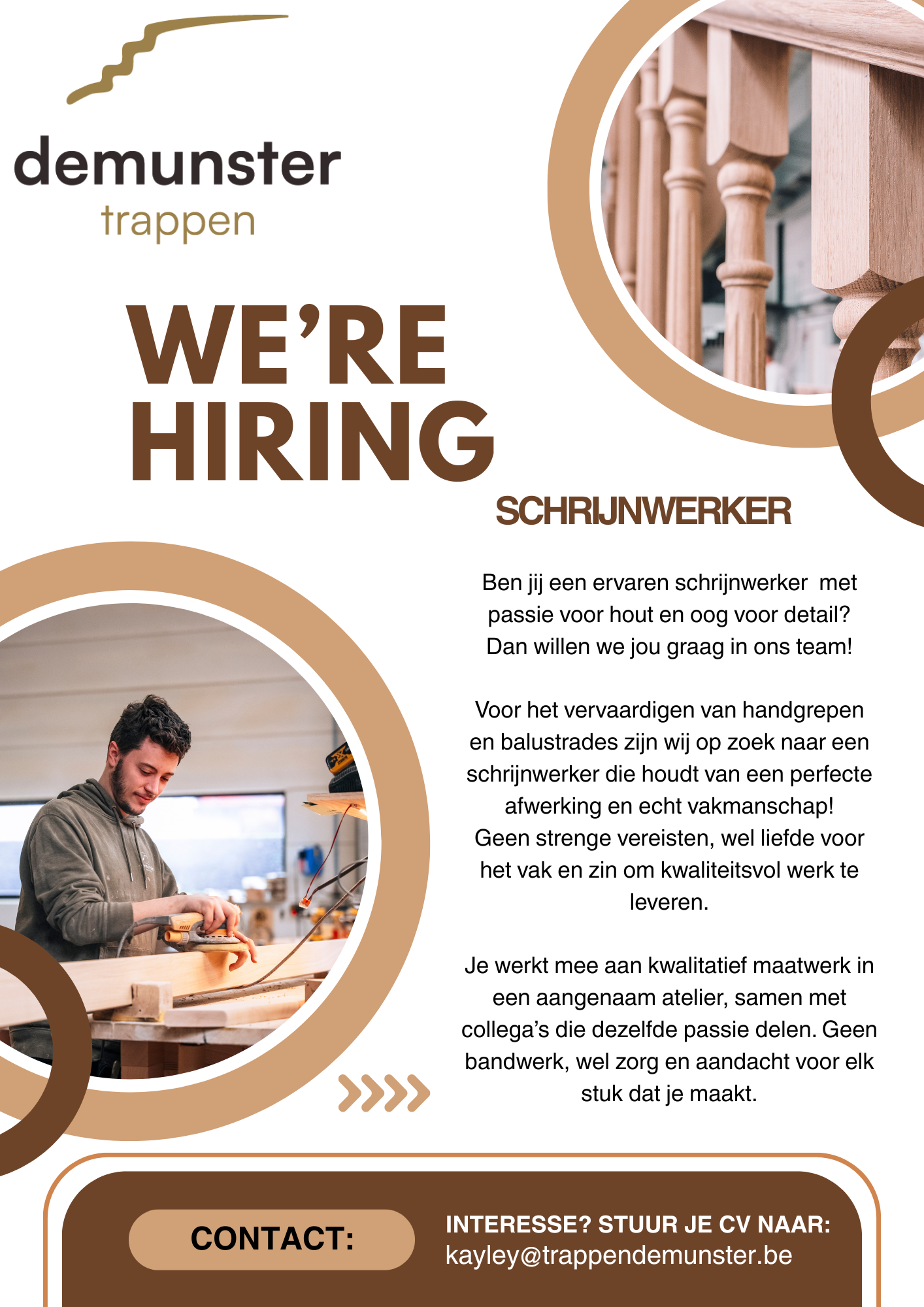 At Stairs Demunster, we make our customers' dreams come true day in and day out and are 100% committed to style, service and craftsmanship. Would you like to join us in making a difference? Then take a quick look at our vacancies and kick-start your career.